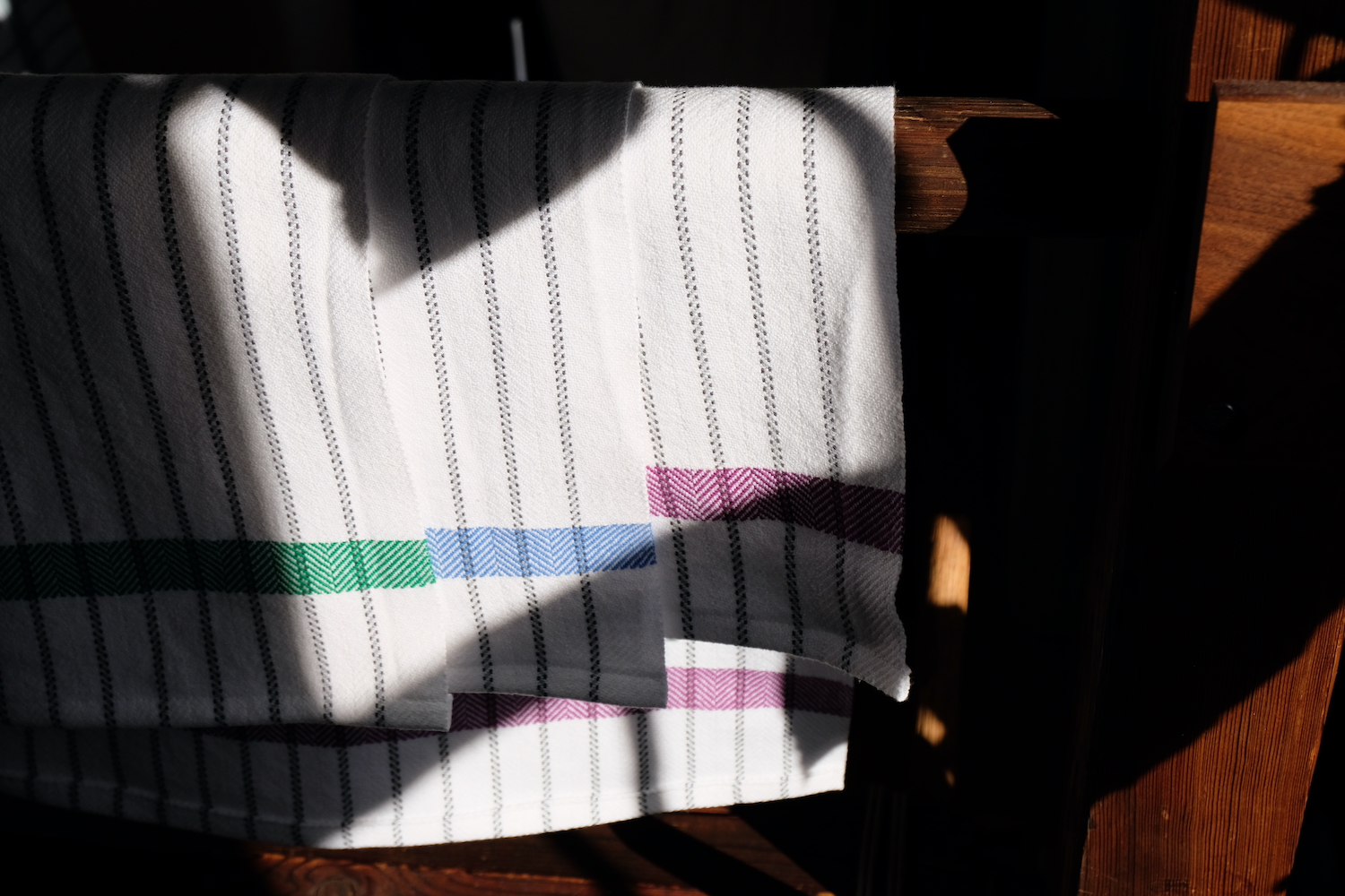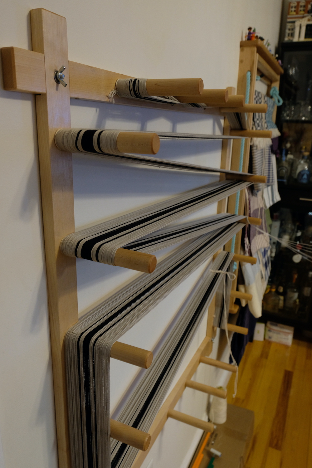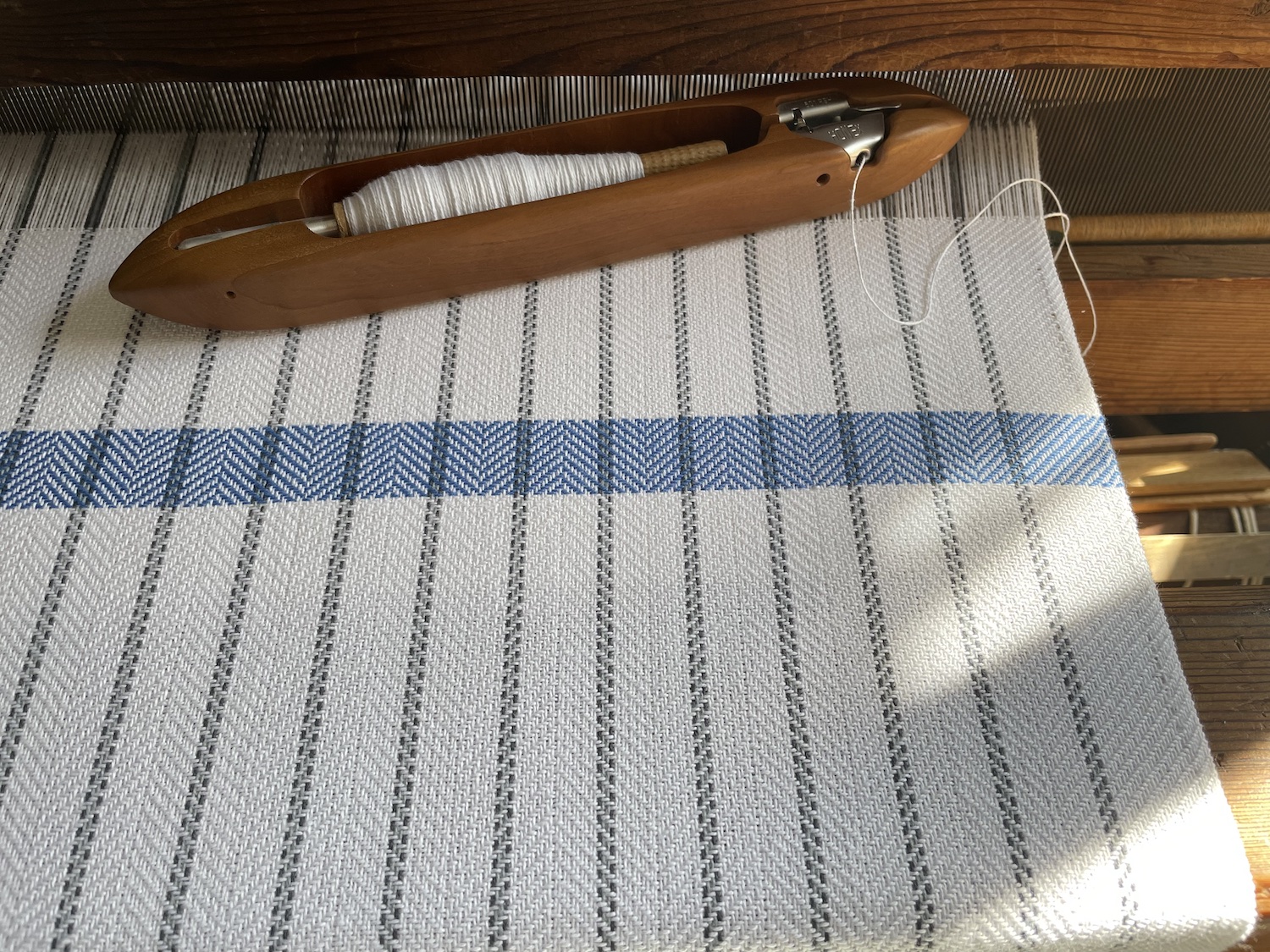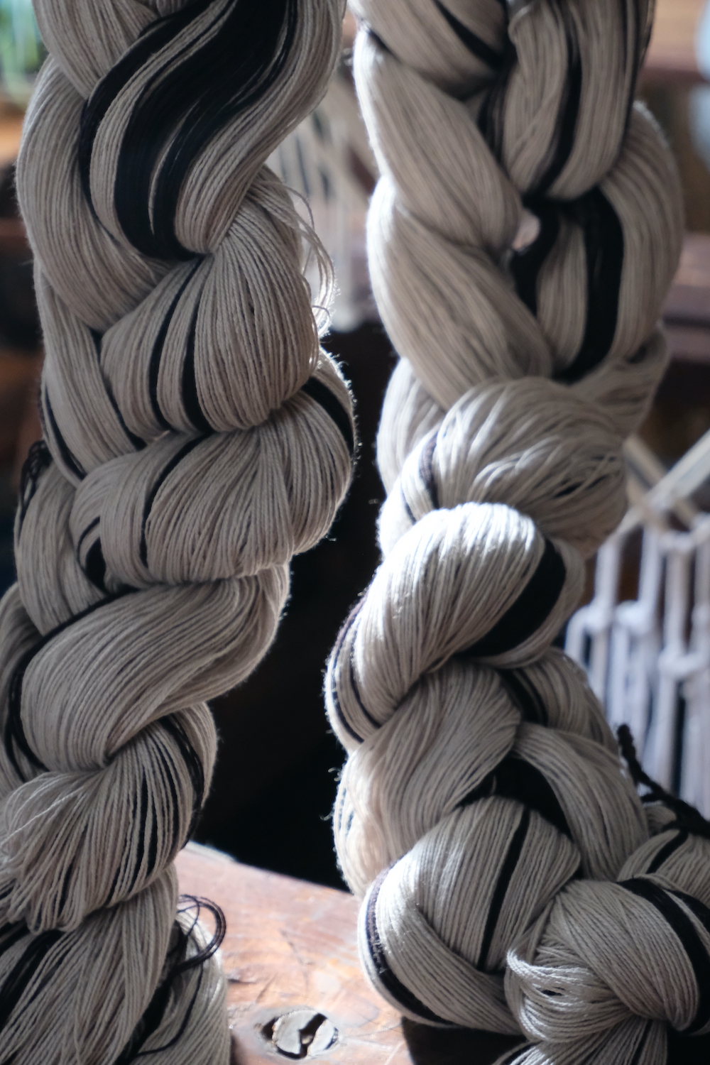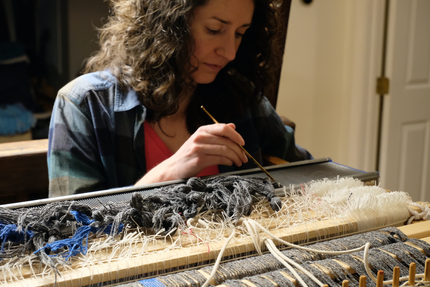 Elena Rose of Rose Handwovens creates handwoven textiles on a nineteenth century counterbalance floor loom. She works out of her home studio in Medford. She began weaving at age nine and continues to explore weave structures and techniques.